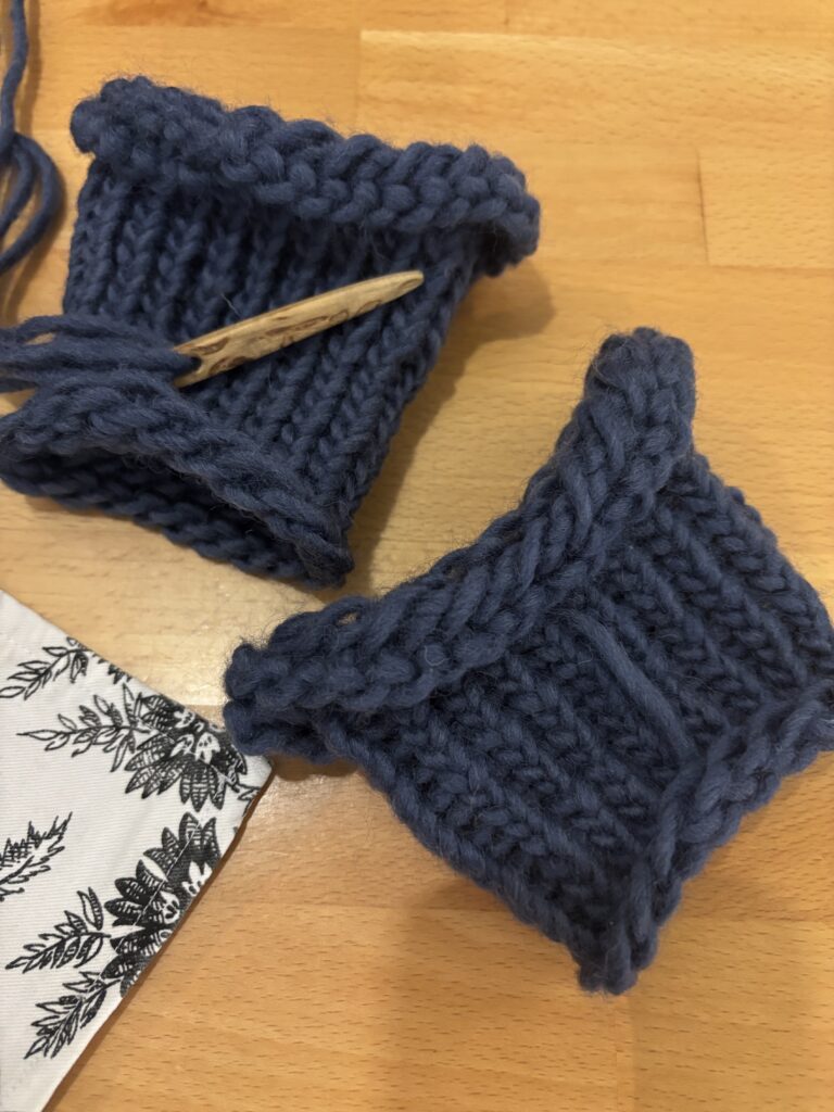 Die Voraussetzung für die Teilnahme an diesem Kurs sind Grundkenntnisse des Oslostichs (die auch am Vormittag im Einsteigerkurs erworben werden können) und die Verwendung der Daumenfangmethode (nicht Freihand-Nadelbinden). Außerdem wäre es hilfreich zumindest einen Verbindungsstich zu beherrschen, also mehrere zusammenhängende Reihen herstellen zu können. Dieser Kurs ist eher technisch ausgerichtet, es wird also in den drei Stunden kein größeres Projekt hergestellt, sondern es werden unterschiedliche Stichvarianten gezeigt, Zunehmen und Abnehmen, verschiedene Verbindungsstiche, Techniken zum Herstellen unterschiedlicher Formen (Finger an Handschuhen, etc.), Möglichkeiten den Anfang und das Ende eines Projekts zu nadeln und außerdem wird die berüchtigte Hansen-Notation erläutert und mit dem praktischen Arbeiten verbunden. Dabei entstehen viele kleine Probestückchen, die dokumentiert werden und später helfen können, Nadelgebundenes so umzusetzen, wie wir es geplant haben.